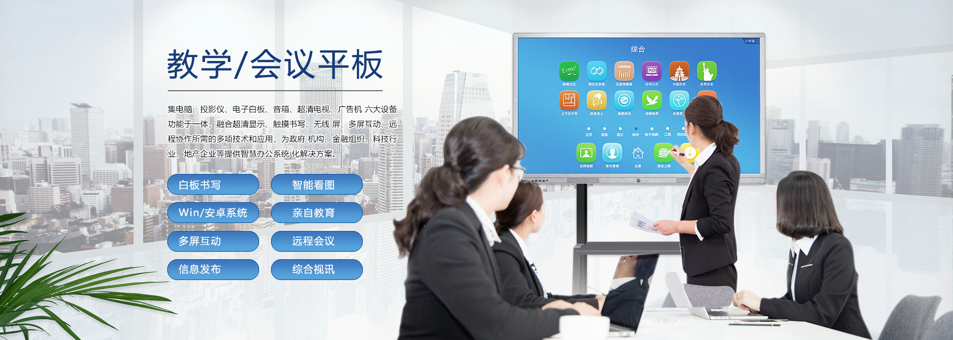 在信息急劇膨脹、互聯(lián)網(wǎng)快速發(fā)展、競(jìng)爭(zhēng)愈加激烈的商業(yè)社會(huì),“開會(huì)”已經(jīng)成了職場(chǎng)人士最為熟悉的一種工作方式。尤其是企業(yè),工作中需要通過(guò)許多大大小小的會(huì)議交流信息、解決問題和作出決策。會(huì)議的最終目的是提高企業(yè)運(yùn)作的效率,但是許多的企業(yè)卻往往陷入了“低效率”的泥潭。場(chǎng)景一:在與客戶的洽談會(huì)上!準(zhǔn)備好的PPT竟發(fā)現(xiàn)打不開了!場(chǎng)景二:開會(huì)啦!與會(huì)人員陸續(xù)進(jìn)入會(huì)議室,人手一疊厚厚的資料,一時(shí)間,整潔干凈的會(huì)議室一下子沸騰起來(lái),會(huì)議討論聲,不停翻找資料的刷刷聲好不“熱鬧”!場(chǎng)景三:炎炎夏日,在小“黑”層里,投影機(jī)發(fā)出陣陣熱浪,讓周圍本就燥熱的人更加的心浮氣躁,久久不能平靜下來(lái),更何從談起會(huì)議質(zhì)量!場(chǎng)景四:遠(yuǎn)程......